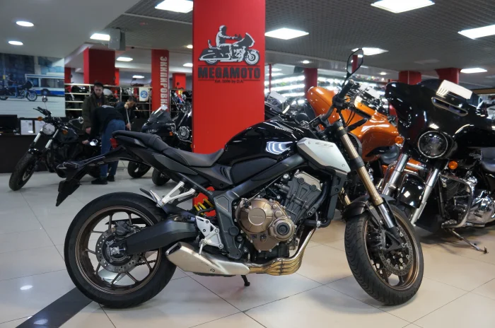 Мотоцикл HONDA CB 650R, 2019 года в мотосалоне MEGAMOTO. Пробег мотоцикла 17 239, цвет черный, растаможен с ПТС и готов к продаже. Чтобы купить HONDA CB 650R, уточнить все технические детали или посмотреть мотоцикл, вы можете оформить заказ на сайте или связаться с нашими менеджерами любым удобным способом. При обращении указывайте, пожалуйста, артикул 140003