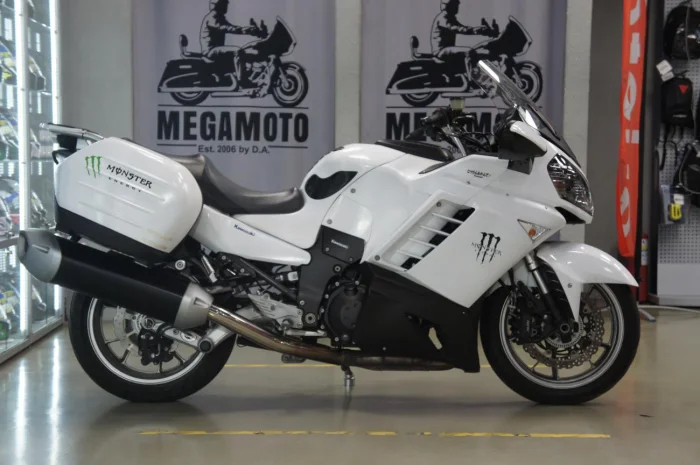 Мотоцикл KAWASAKI GTR 1400 (Concours 14), 2008 года в мотосалоне MEGAMOTO. Пробег мотоцикла 39 256, цвет белый, растаможен с ПТС и готов к продаже. Чтобы купить KAWASAKI GTR 1400 (Concours 14), уточнить все технические детали или посмотреть мотоцикл, вы можете оформить заказ на сайте или связаться с нашими менеджерами любым удобным способом. При обращении указывайте, пожалуйста, артикул 133044