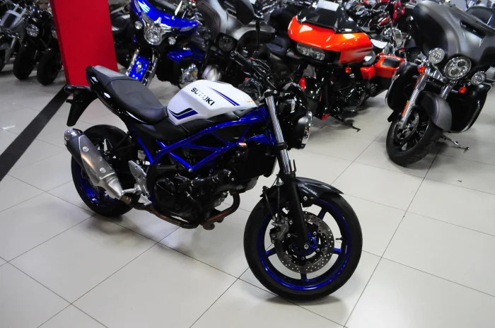 Мотоцикл SUZUKI SV 650, 2019 года в мотосалоне MEGAMOTO. Пробег мотоцикла 19 410, цвет бело-синий, растаможен с ПТС и готов к продаже. Чтобы купить SUZUKI SV 650, уточнить все технические детали или посмотреть мотоцикл, вы можете оформить заказ на сайте или связаться с нашими менеджерами любым удобным способом. При обращении указывайте, пожалуйста, артикул S71373
