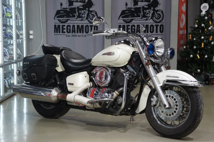 Мотоцикл YAMAHA DRAGSTAR1100 CLASSIC, 2003 года в мотосалоне MEGAMOTO. Пробег мотоцикла 48 600, цвет белый, растаможен с ПТС и готов к продаже. Чтобы купить YAMAHA DRAGSTAR1100 CLASSIC, уточнить все технические детали или посмотреть мотоцикл, вы можете оформить заказ на сайте или связаться с нашими менеджерами любым удобным способом. При обращении указывайте, пожалуйста, артикул K24884